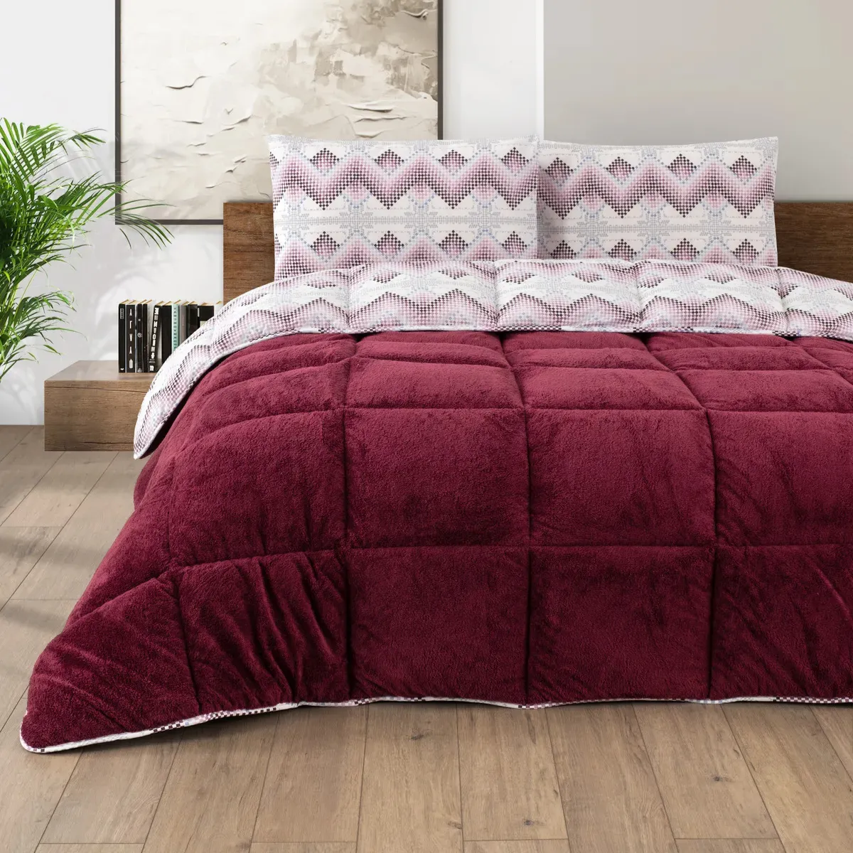 De Linde Home Dekbed Zonder Overtrek – Inclusief Kussensloop – Teddy – Bordeaux