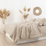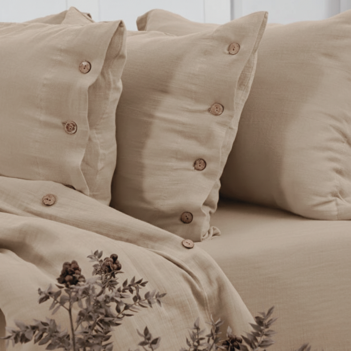 De set is voorzien van stijlvolle kokosnootknopen, die een natuurlijke en elegante touch geven en het luxe karakter van de dekbedovertrek set versterken.
