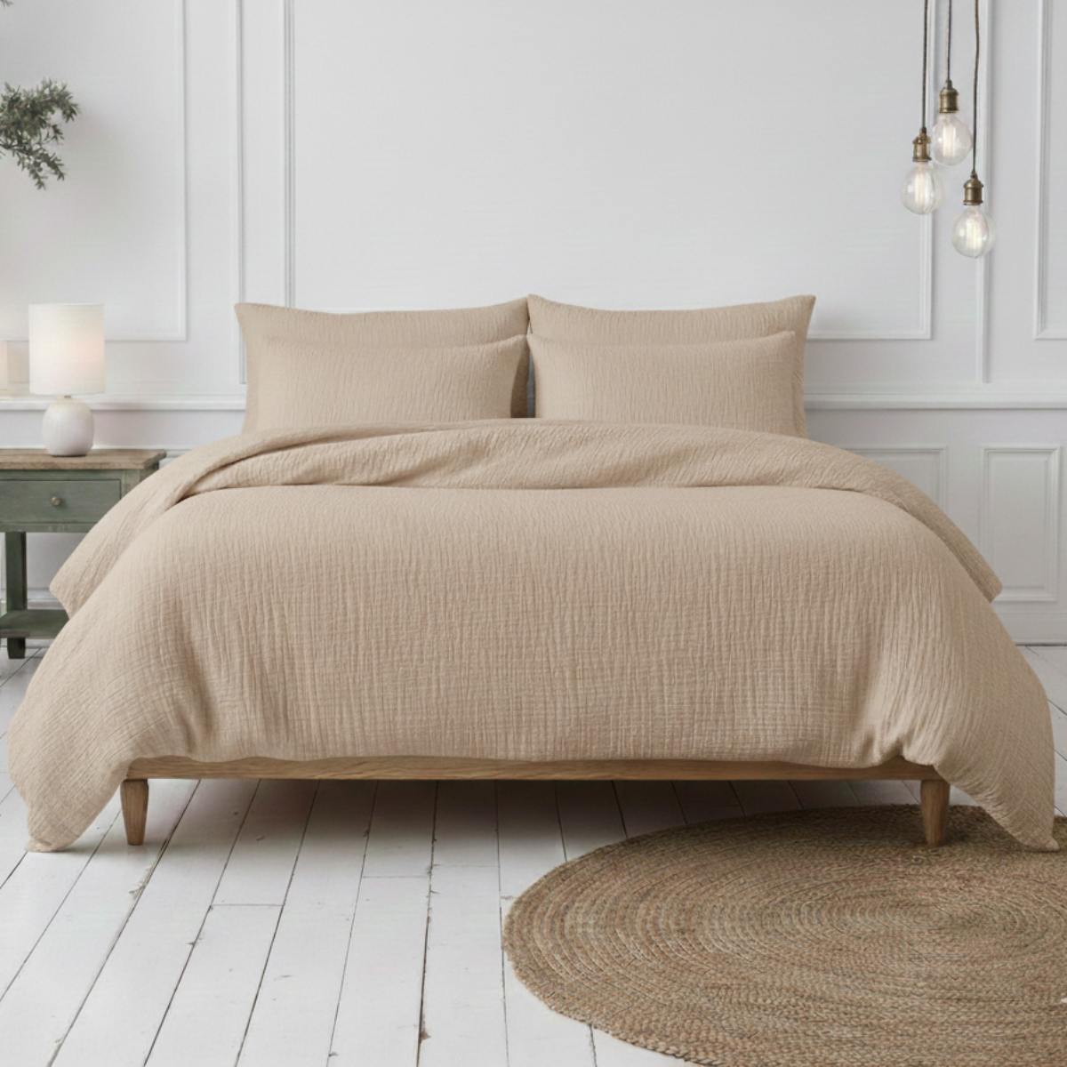 Mousseline Dekbedovertrek – Beige – Inclusief Hoeslaken & Kussensloop