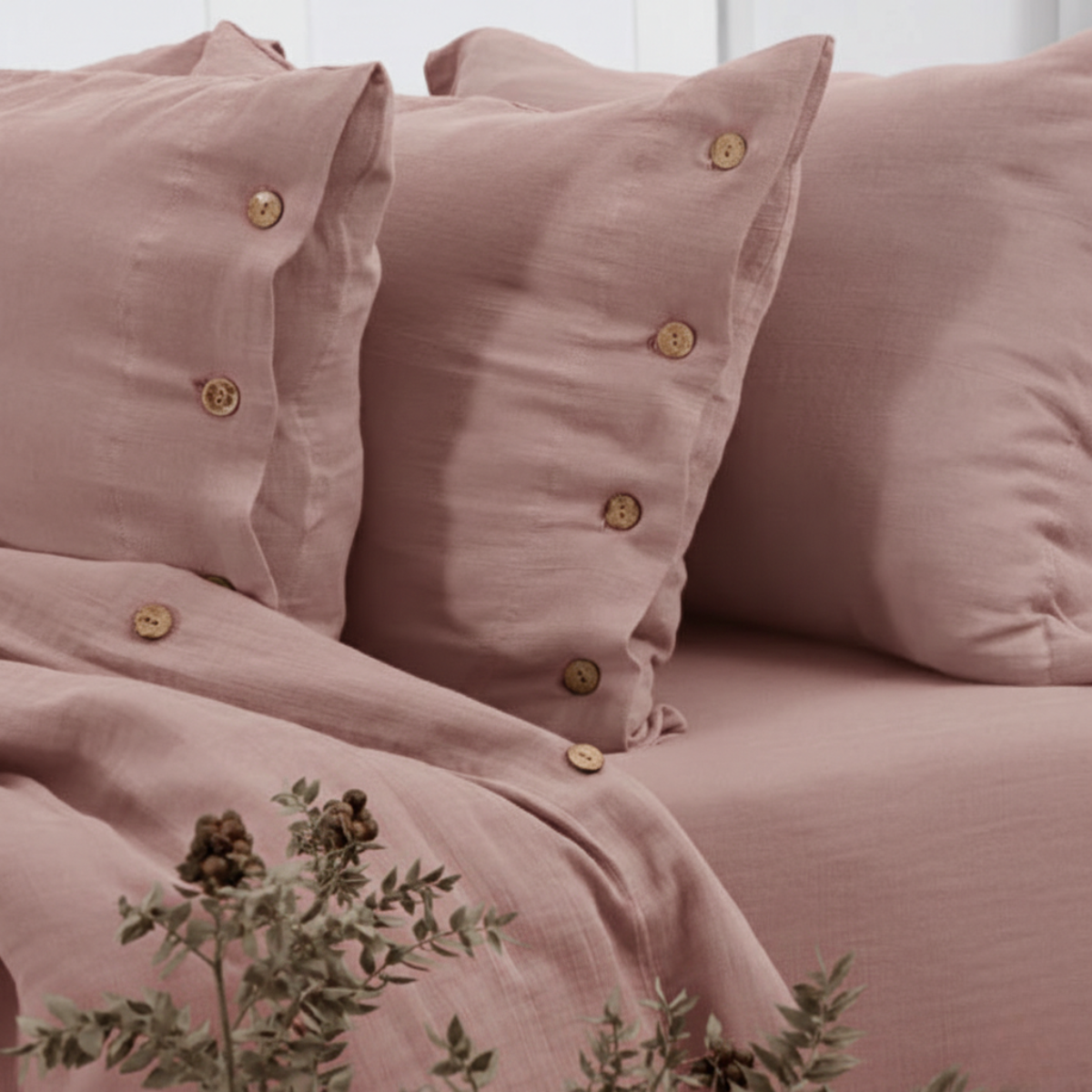 De set is voorzien van stijlvolle kokosnootknopen, die een natuurlijke en elegante touch geven en het luxe karakter van de dekbedovertrek set versterken.