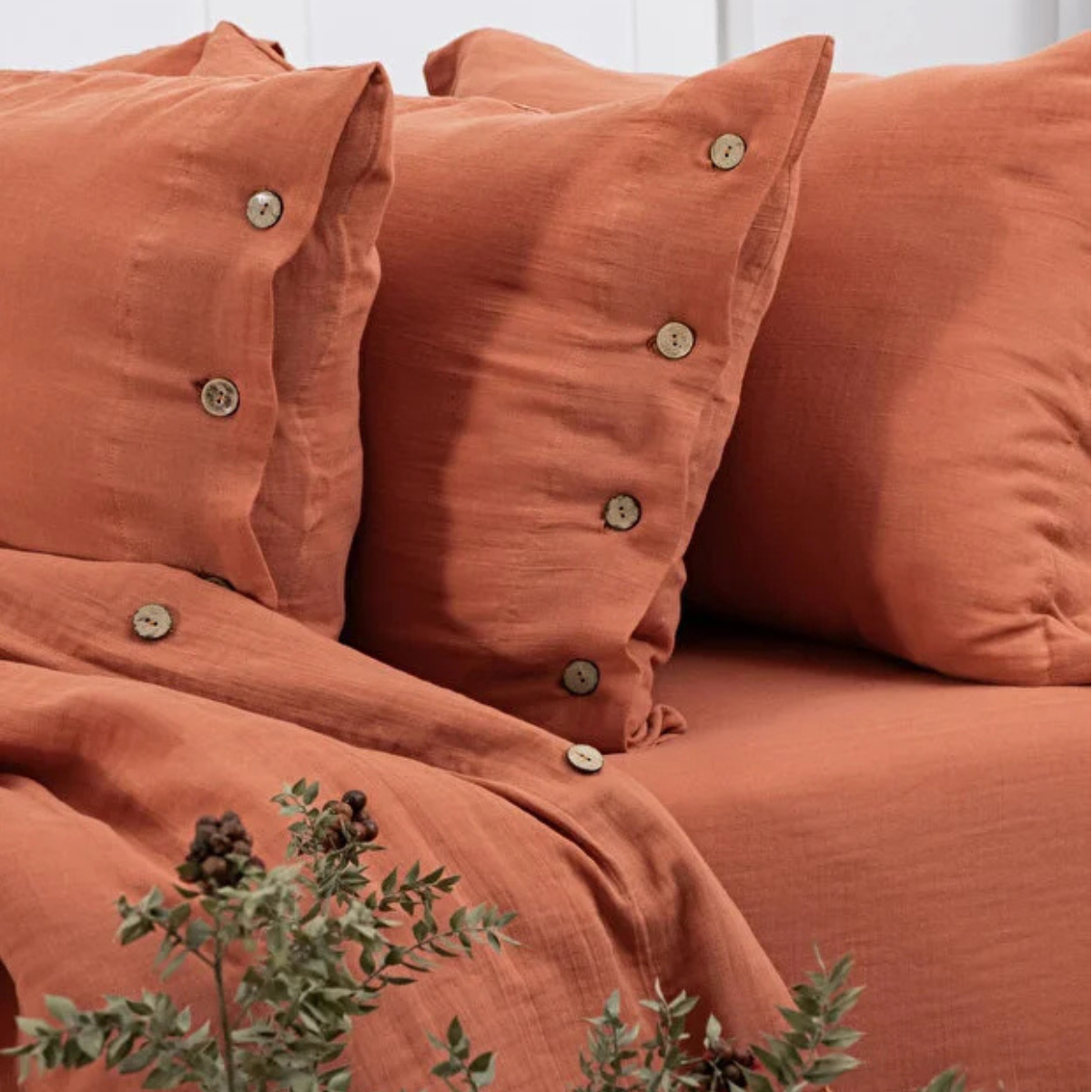 De set is voorzien van stijlvolle kokosnootknopen, die een natuurlijke en elegante touch geven en het luxe karakter van de dekbedovertrek set versterken.