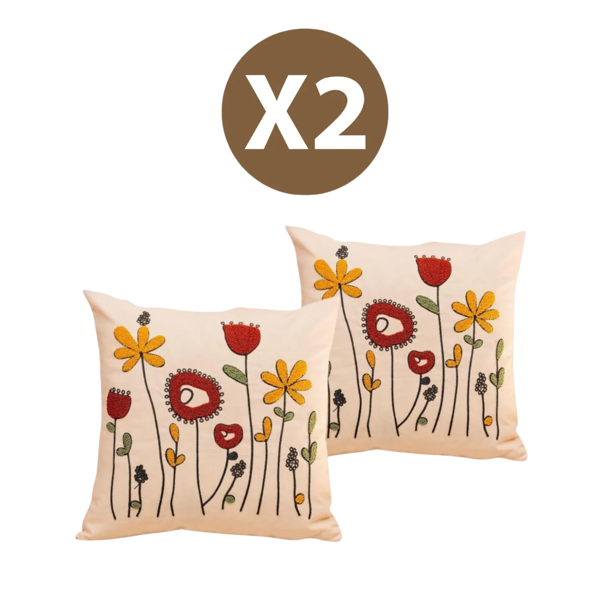 De Linde Home Geborduurde Moderne Sierkussenhoezen, 100% Authentiek Turks geweven katoen, Crème, 43×43 cm (Set van 2)