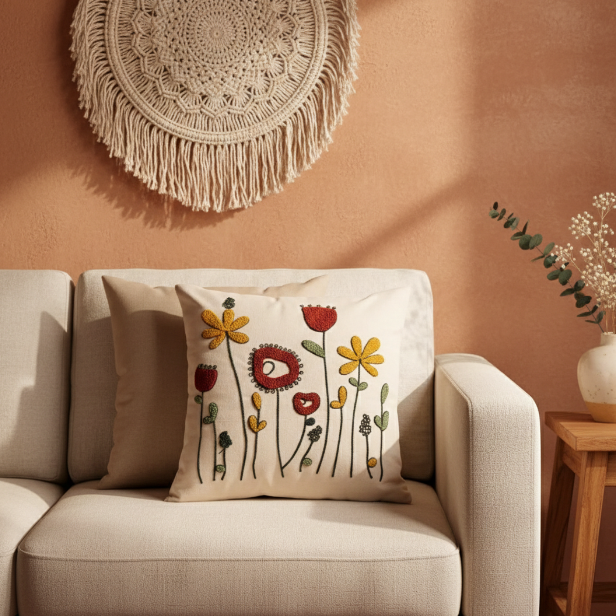 Deze sierkussenhoezen zijn gemaakt van 100% katoen, een licht, ademend en zacht materiaal van ambachtelijke kwaliteit. Het subtiele geborduurde patroon geeft je interieur een verfijnde, moderne uitstraling en past perfect bij eigentijdse woonstijlen zoals Scandinavisch, minimalistisch of boho chic.