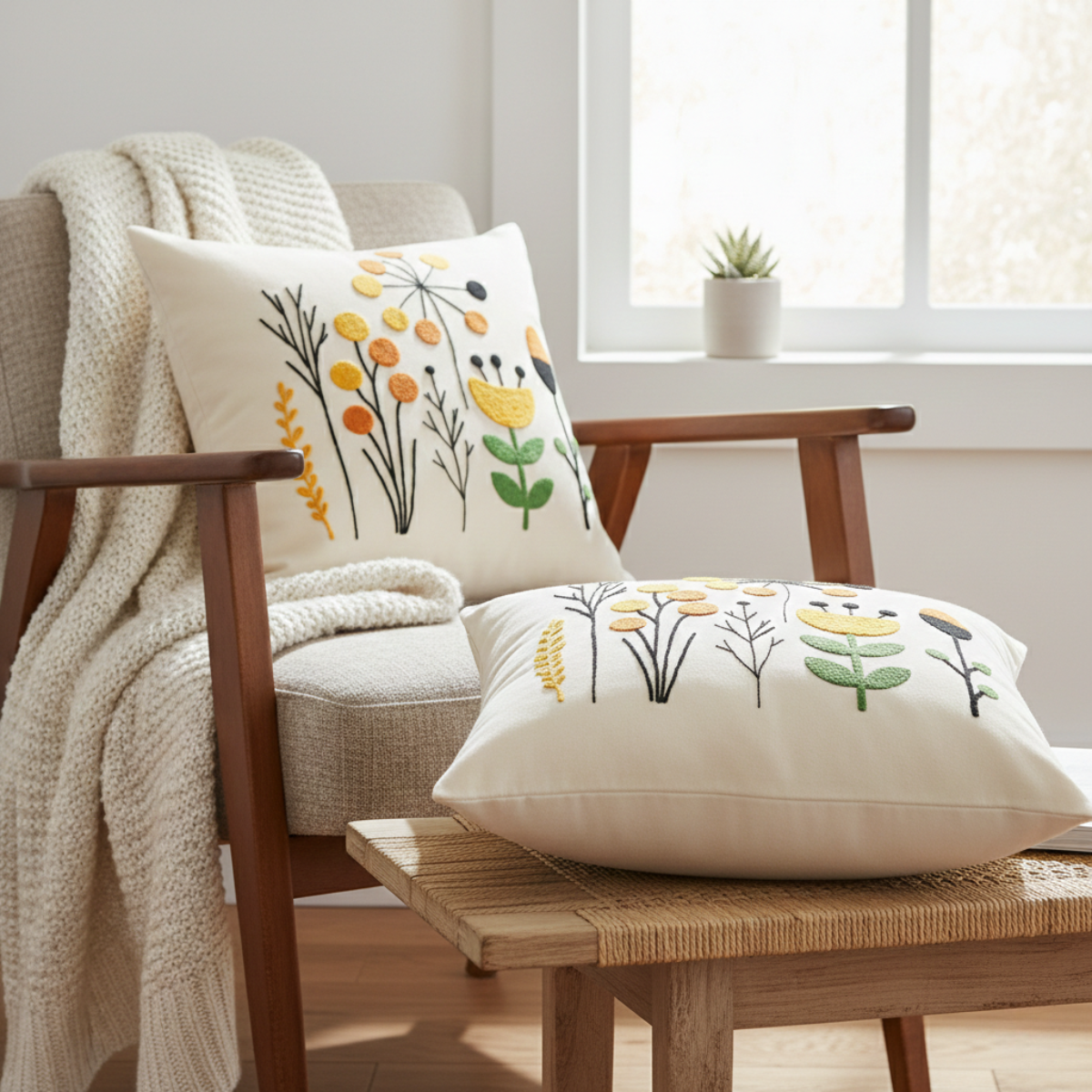 Deze sierkussenhoezen zijn gemaakt van 100% katoen, een licht, ademend en zacht materiaal van ambachtelijke kwaliteit. Het subtiele geborduurde patroon geeft je interieur een verfijnde, moderne uitstraling en past perfect bij eigentijdse woonstijlen zoals Scandinavisch, minimalistisch of boho chic.
